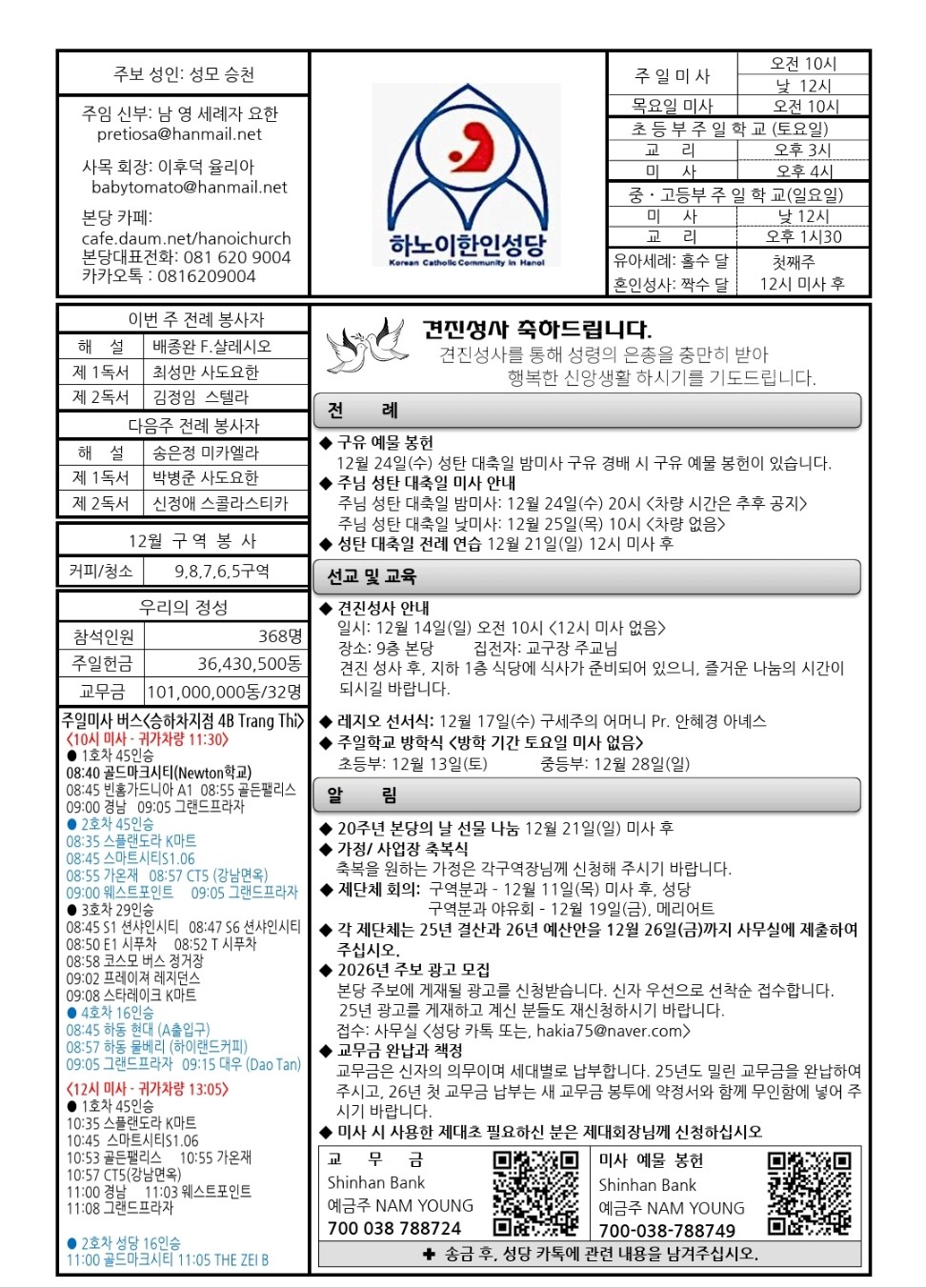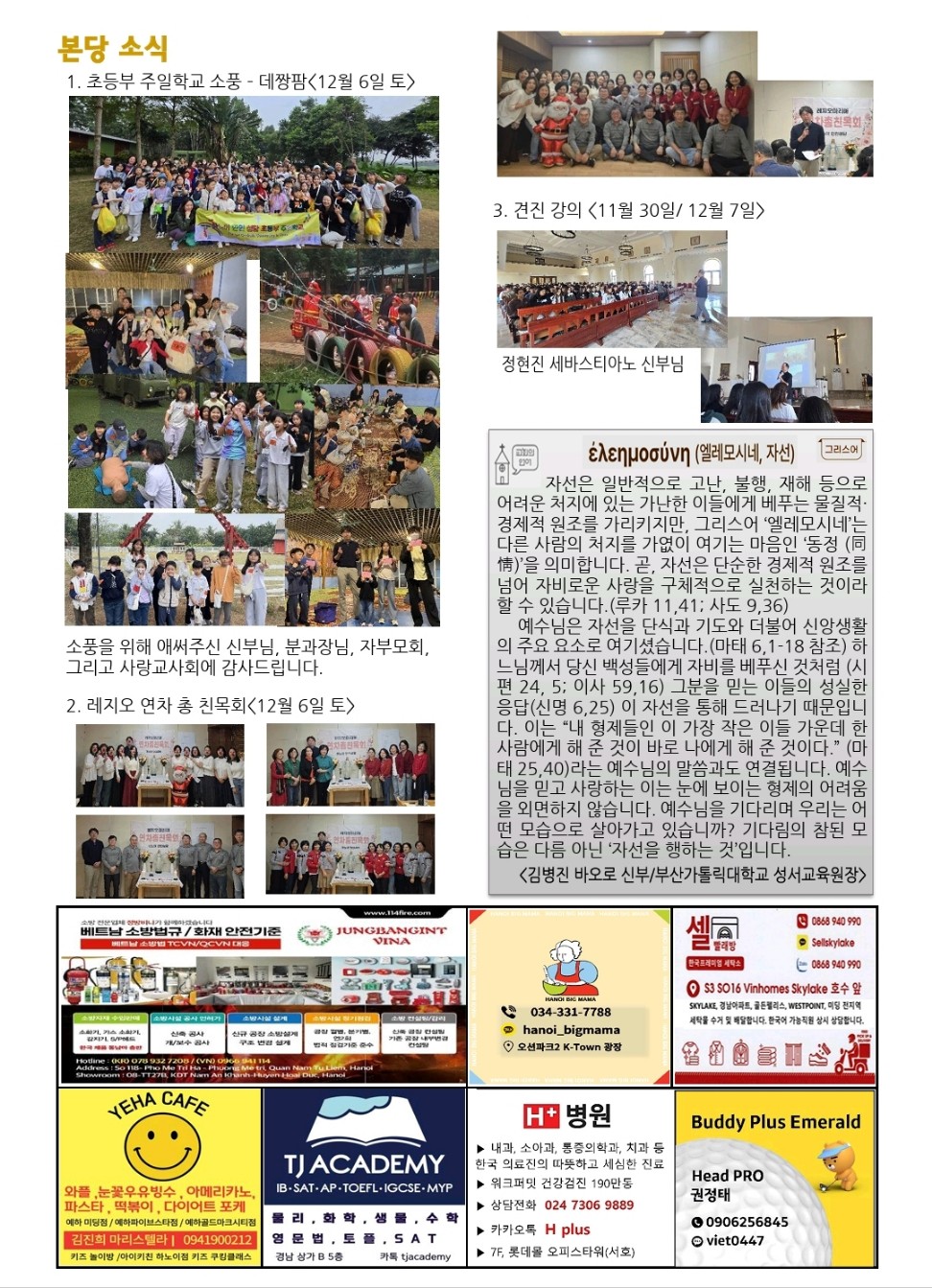 대림 제3주일(25.12.14) 하노이 주보(자선주일) 작성자홍보분과 김율리아^^|작성시간25.12.13|조회수123 목록 댓글 0 글자크기 작게가 글자크기 크게가 다음검색 현재 게시글 추가 기능 열기 북마크 신고 센터로 신고 댓글 댓글 0 댓글쓰기 답글쓰기 댓글 리스트