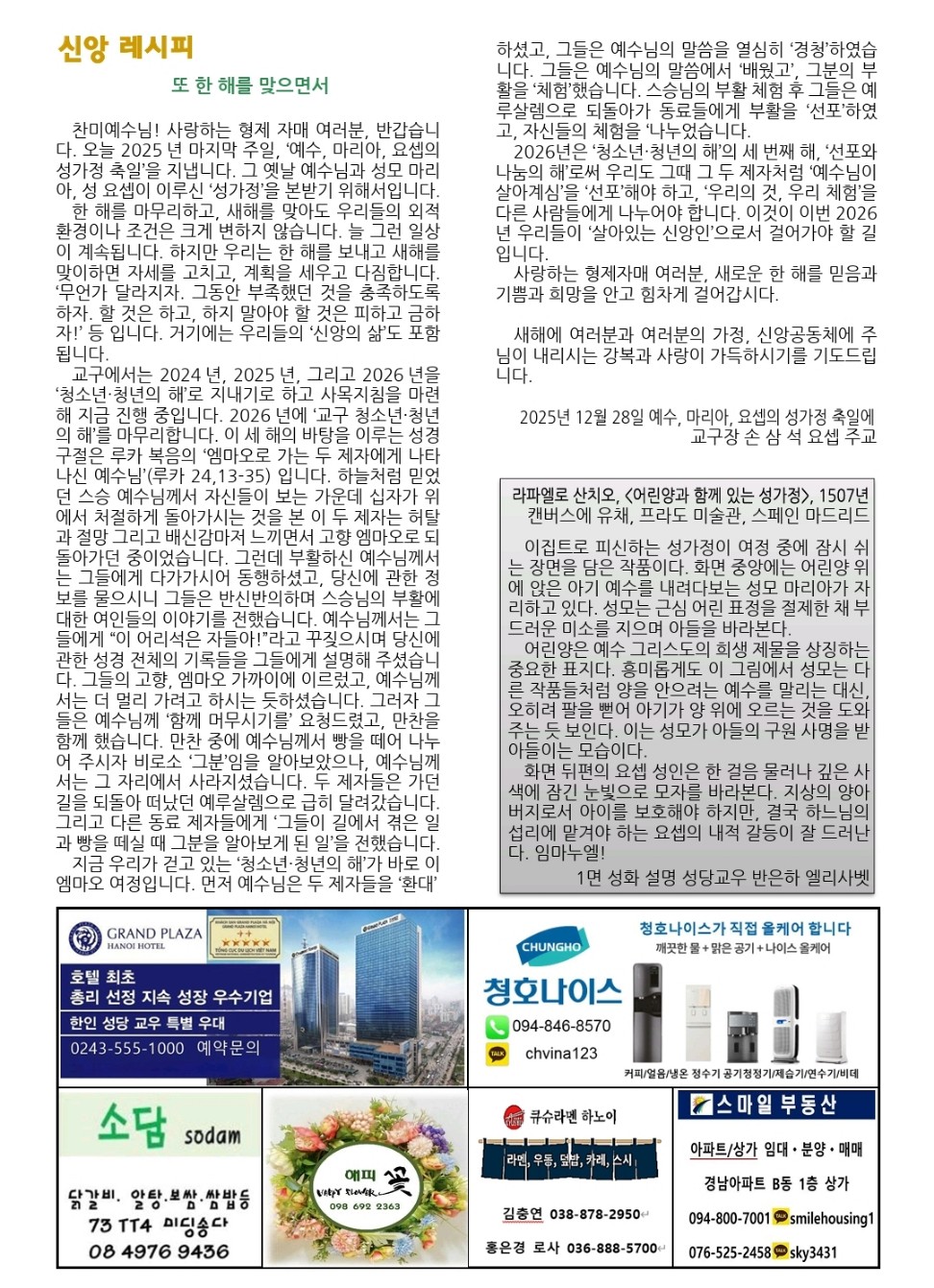 예수,마리아, 요셉의 성가정 축일(25.12.28) 하노이 주보 작성자홍보분과 김율리아^^|작성시간00:44|조회수17 목록 댓글 0 글자크기 작게가 글자크기 크게가 다음검색 현재 게시글 추가 기능 열기 북마크 신고 센터로 신고 댓글 댓글 0 댓글쓰기 답글쓰기 댓글 리스트
