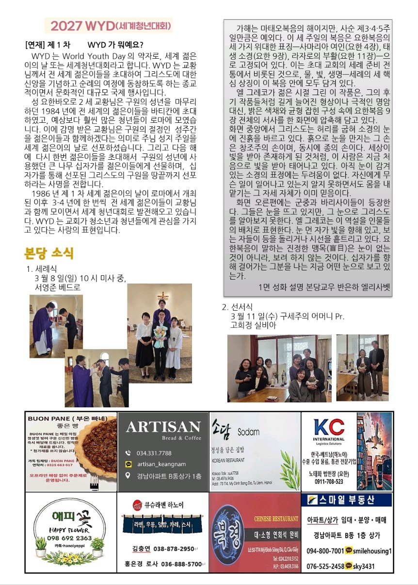 사순 제4주일(26.3.15) 하노이 주보 작성자홍보분과 김율리아^^|작성시간26.03.15|조회수45 목록 댓글 0 글자크기 작게가 글자크기 크게가 다음검색 현재 게시글 추가 기능 열기 북마크 신고 센터로 신고 댓글 댓글 0 댓글쓰기 답글쓰기 댓글 리스트