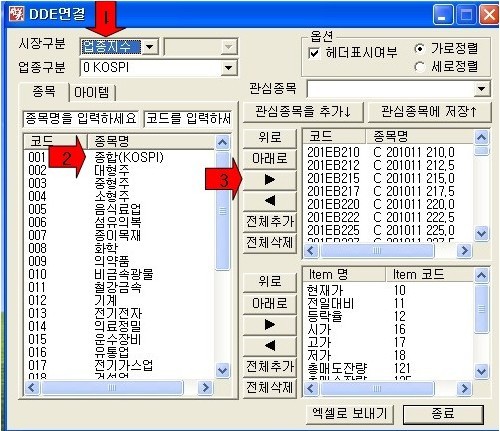 3. DDE연결 설정방법2 - [아이템 선택방법]