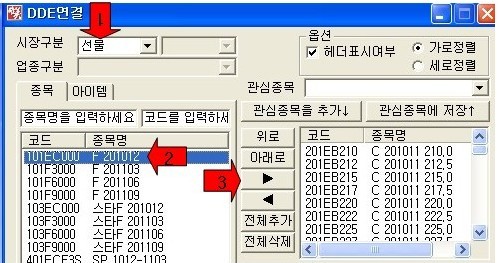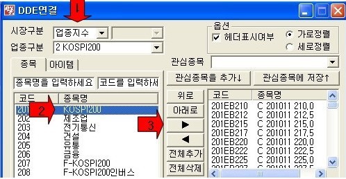 2. DDE연결 설정방법1 - [종목명 선택방법]