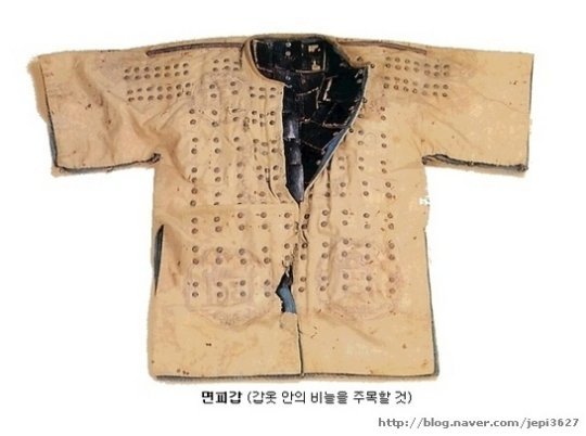 그리고 두정갑 형태를 보면 방한력도 우수한것 같습니다. 쇠가 밖으로 노출되면 급속히 냉각되어 체온을 떨어뜨리는데 반해, 솜을 채운 두꺼운 옷안에 쇠를 달면 냉각되는 문제를 줄일수 있을것 같네요. 조선시대 임진왜란 전후가 소빙하기에 해당되서 추웠다고 하던데, 연관이 있지 않을까 싶기도합니다 -