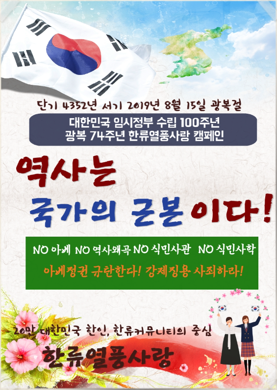 단기 4352년 8월 15일 한류열풍사랑 운영자 일동 드림.
