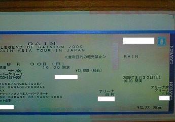 전 티켓이 매진된데 이어 일본 옥션에서 높은 가격으로 거래되었던 비의 티켓입니다.