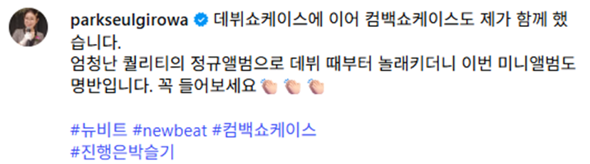 박슬기 뉴비트 데뷔 쇼케때 같이 뿔 달아서 소소하게 화제였는데