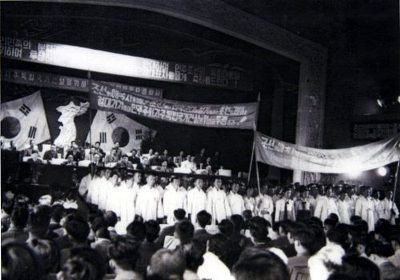 ◆ 1947년 조선 민주당 발기인 대회.
