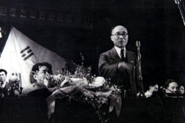 ◆ 1948년 광복 3주년 기념행사에서 연설 중인 김일성