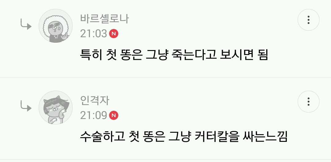 설마 털 얘기 하는건가? ㅋㅋㅋㅋ 옛날에 일 때문에 스트레스 심하게 받은 적이 있는데 그 때 살면서 처음으로 변비가 와서...몇달 고생함.. 그로 인해 치열 생기고 치질도 조그마하게 생기고..