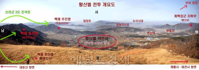 660년 황산벌에서 있었던 백제군과 신라군 사이의 큰 싸움을 말한다. 황산은 지금의 충청남도 논산시 연산(連山) 지방이다.