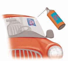 자동차 유리에 붙은 주차위반 스티커나 각종 출입증을 떼어 내기란 여간 어려운 게 아니죠. 이때 스프레이로 된 모기약을 뿌리고 1~2분 후에 걸레로 닦아내면 깨끗하고 쉽게 뗄 수 있답니다. 모기약의 기름 성분이 스티커의 접착제에 스며들어 접착력을 떨어뜨리기 때문이에요.