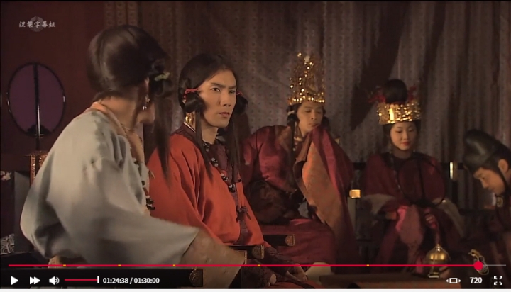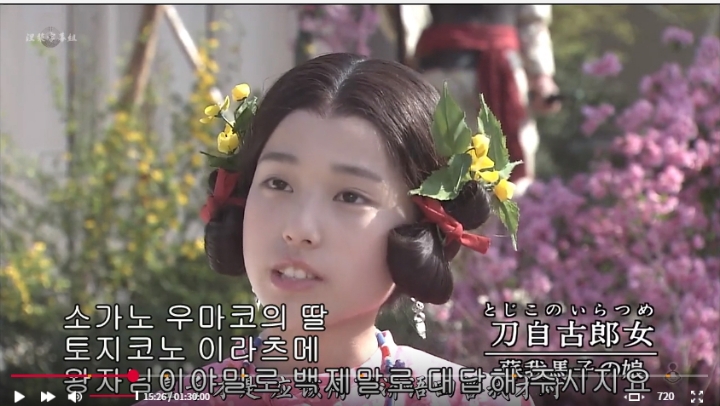 역사 기록대로 작품 내내 백제 귀걸이, 장신구랑 백제 복식을 입고 나오는데 심지어 절풍식 관모도 하고 나옴.