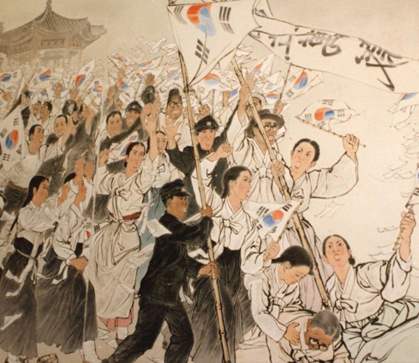 일제강점기에 3.1만세운동을 외치는 사람들
