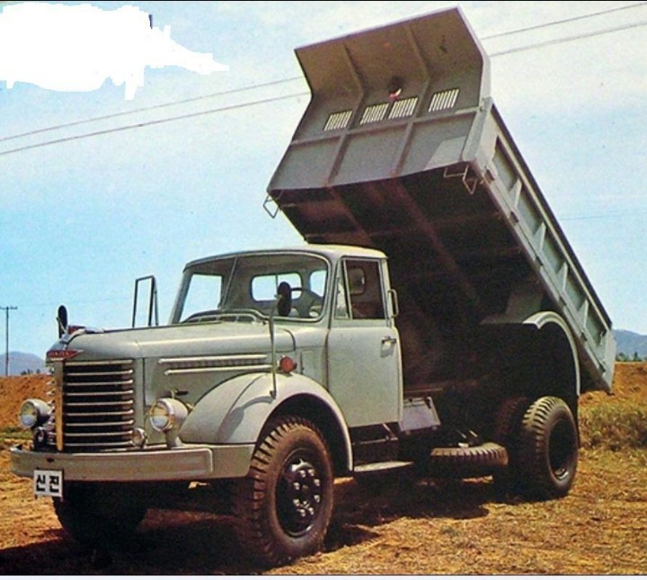대략 70년대 말에서 80년대 운행된 새한 8톤 덤프입니다. 이 차량도 '제무시'트럭만큼은 아니지만 엔진이 상당히 높게 탑재되어 먼거리도 잘 다녔다.