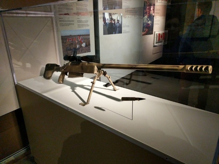 캐나다군 특수부대 JTF2의 저격수(보안상 익명)가 2017년 5~6월 사이 이라크 모처에서 3,540m 떨어진 위치의 IS 대원을 저격, 사살하는 데 사용한 것과 같은 기종인 맥밀란 Tac-50 12.7mm 저격총, 오타와 캐나다 전쟁박물관 소장품