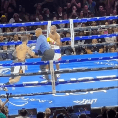 메이웨더와 시범경기 중 맞기만 하다가 심판이 경기 중단 선언을 하자 열 받은 존 고티 3세는 심판을 무시하고 메이웨더에게 달려들어 주먹을 날렸지만 맞추지 못하고 되려 한대 더 맞았다.