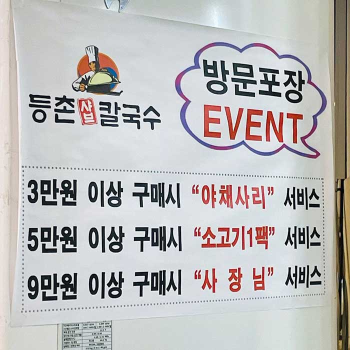 어느 칼국수 식당의 구매 금액별 서비스 작성자라스트올인|작성시간24.06.07|조회수326 목록 댓글 0 글자크기 작게가 글자크기 크게가 다음검색 현재 게시글 추가 기능 열기 북마크 공유하기 신고 센터로 신고 댓글 댓글 0 댓글쓰기 답글쓰기 댓글 리스트