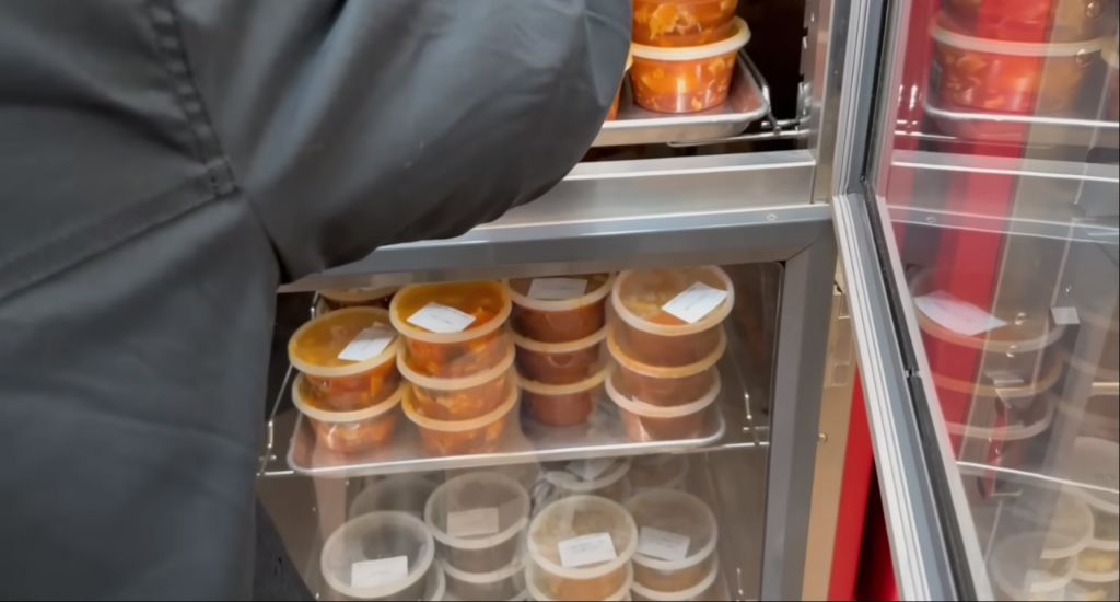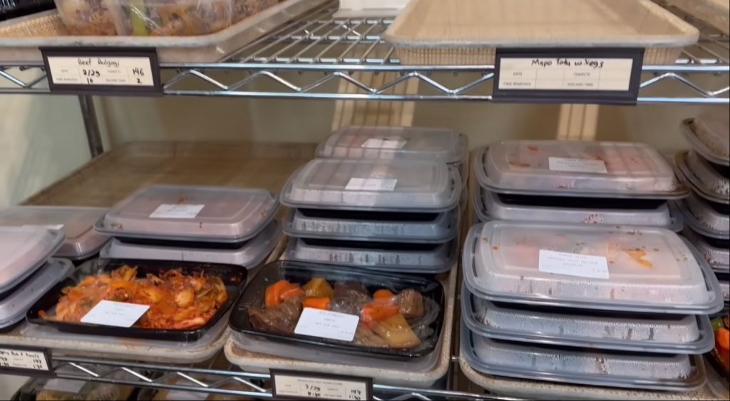 모든 제품들은 1~2인분씩 전자렌지 전용 용기에 포장되고 국물류는 온열기기에 보관되어 있고 전자렌지에 데워 먹을 수도 있다.