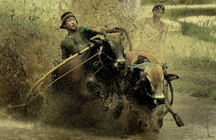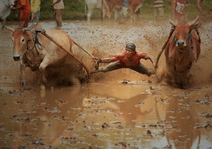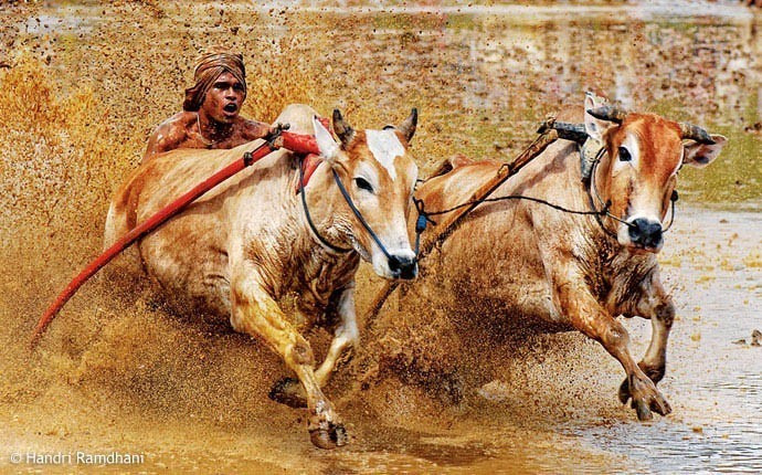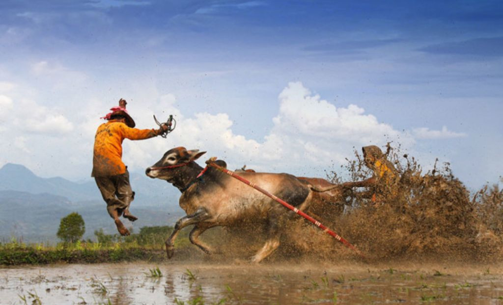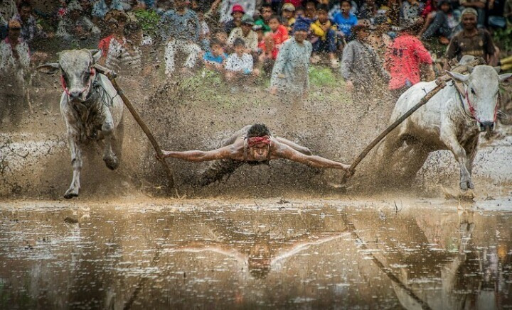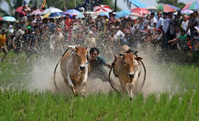 매년 열리는 이 대회는 수확량을 늘리기 위해 소를 몰고 논을 갈던 인도네시아 전통행사에서 유래된 것이다. 이 경주에서 우승한 황소는 높은 가격으로 팔 수 있다.