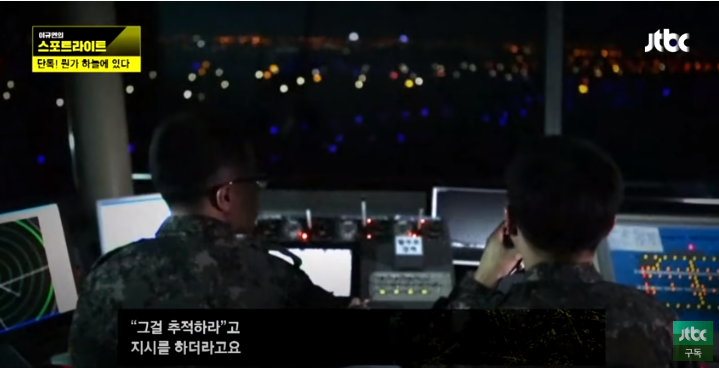 괴 비행물체를 발견 한 후 지상통제소에 "앞에 미식별물체가 움직인다"라고 보고를 하니 지상 작전 통제관이 추적하라고 지시했다.