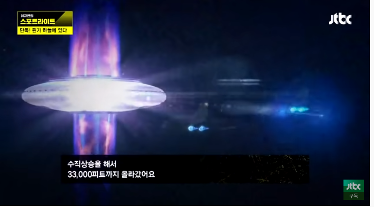그 순간 잠깐 서 있던 괴비행체는 33,000 피트까지 몇 초 안에 수직 상승을 해버렸다.