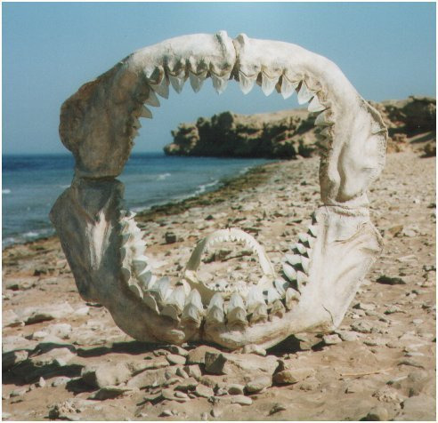 이 세상에서 가장 큰 상어의 턱뼈의 예상 가격은 당시 8억원에 이르렀다. 높이 2.44m, 폭 3.35m 크기에 무려 182개의 이빨을 갖고 있는 이 턱뼈의 규모에 유추해 해당 상어의 크기를 추정해보면 길이 15m, 무게는 100톤에 달했을거라고 예상된다.