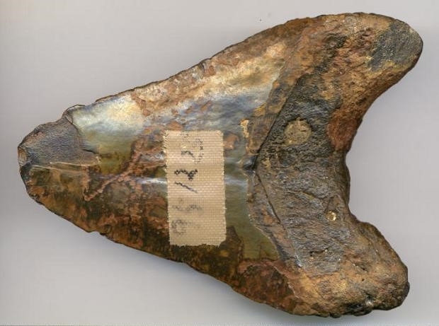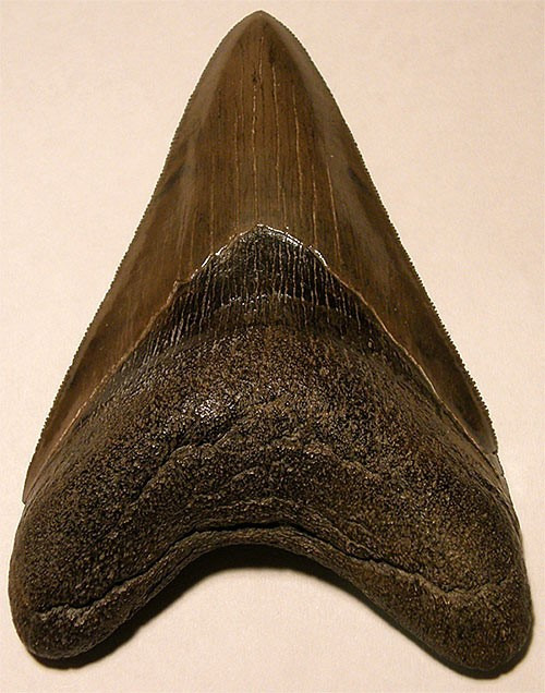 메갈로돈의 이빨은 길이와 너비가 아주 크다.