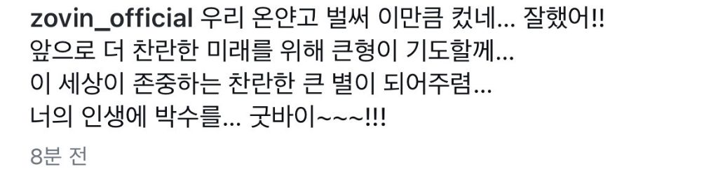 후원하던 결연아동이 자립하게 된 가수 노라조 조빈 작성자싸인은나중에|작성시간24.11.15|조회수200 목록 댓글 1 글자크기 작게가 글자크기 크게가 다음검색 현재 게시글 추가 기능 열기 북마크 공유하기 신고 센터로 신고 댓글 댓글 1 댓글쓰기 답글쓰기 댓글 리스트 작성자밤하늘의달 | 작성시간 24.11.15 댓글 전체보기