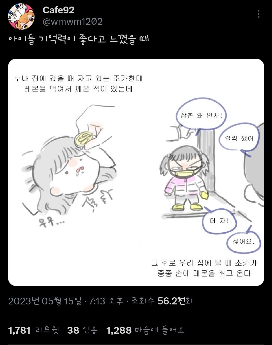 아이들 기억력이 좋다고 느꼈을 때 ㅋㅋㅋ 작성자던던댄스|작성시간25.01.12|조회수170 목록 댓글 0 글자크기 작게가 글자크기 크게가 다음검색 현재 게시글 추가 기능 열기 북마크 공유하기 신고 센터로 신고 댓글 댓글 0 댓글쓰기 답글쓰기 댓글 리스트