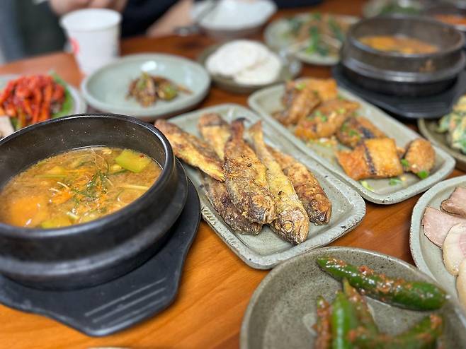 개인 솥에 나오는 솥밥은 예술이라는 말이 절로 나올 정도로 윤기가 흐르고 밥맛이 좋다. 기본 구성도 훌륭하지만 추가 메뉴인 황태구이나 목살 양념구이를 추가하면 더욱 푸짐하게 먹을 수 있다.