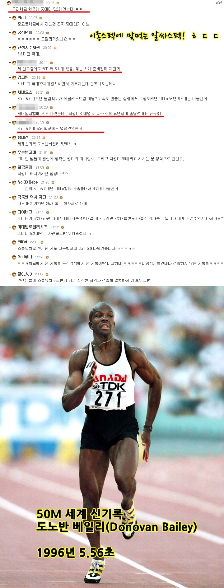 작성자시간의 흐름속으로 작성시간 10.11.22 50m 4초 후반대 우리학교에 몇 명 있었는데..