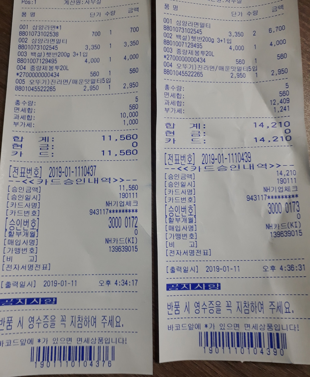 그런데 같은 품목에 영수증이 왜 두 개인지 궁금해 하실 수도 있겠습니다만