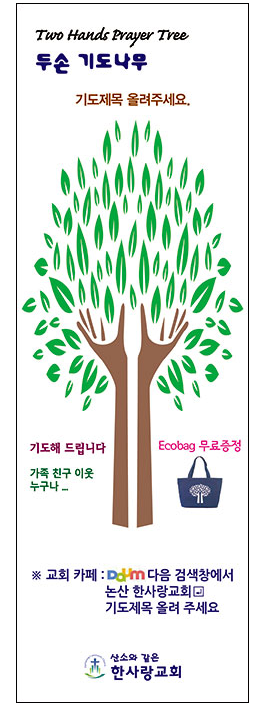 1) 기도제목에 따라 기도 카드를 작성해서 두손기도나무에 부착하면 애코백을 무료로 준다