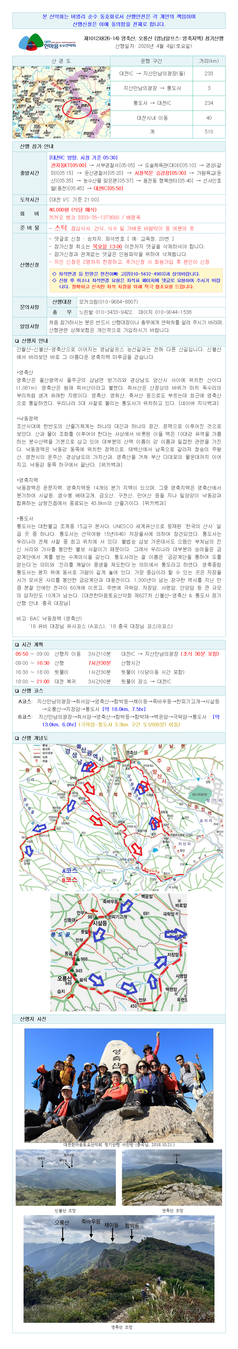 *산행 코스 GPX 파일은 수요일 오전에 현재 페이지에 업로드 하겠습니다.