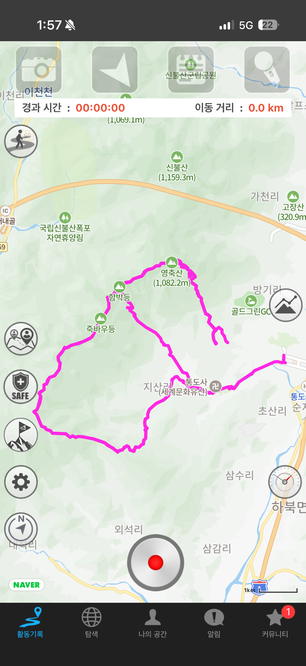 11. 메인화면으로 돌아와서 “활동기록”을 눌러보시면, 업로드한 경로가 지도에 뜹니다.