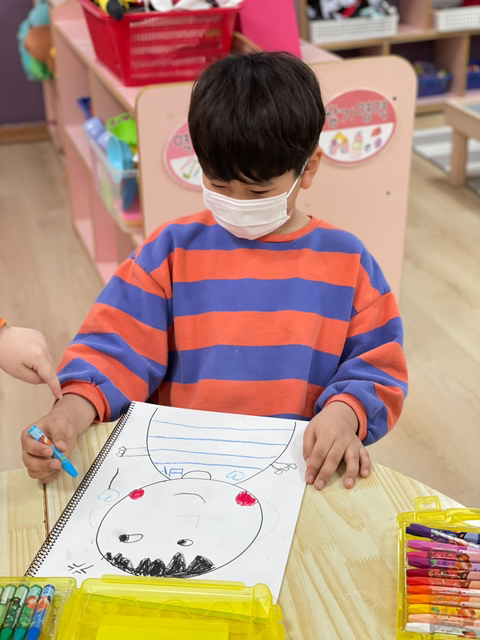 ๋ ์ฐ๋ฆฌ ๋ฐ ์น๊ตฌ์ ์ผ๊ตด์ ๊ด์ฐฐํ๋ฉฐ ๊ทธ๋ ค๋ณด๋ ์๊ฐ๋ ๊ฐ์ ธ๋ดค๋๋ฐ, ๋ฐ๋ค๋ฐ ์น๊ตฌ๋ค์ ์น๊ตฌ์ ํ์ , ๋จธ๋ฆฌ ๋ชจ์, ์ท ๋ชจ์์ ํฌ๋ ํ์ค๋ฅผ ์ฌ์ฉํด ํํํด๋ณด์๋ต๋๋ค^^