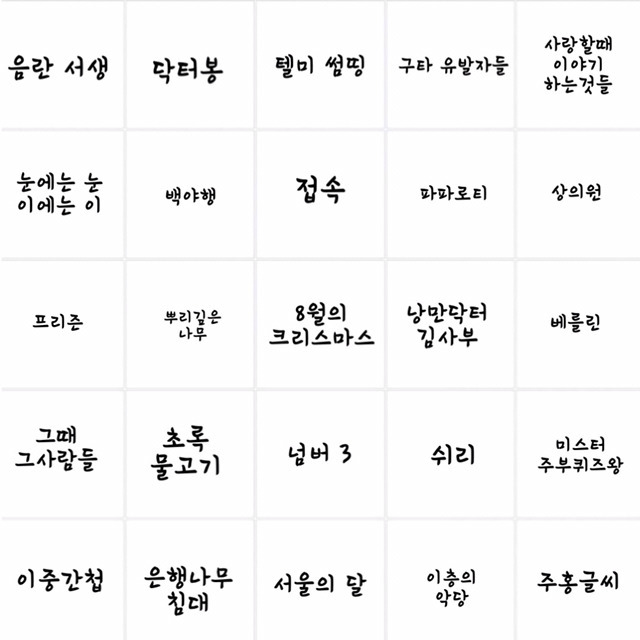 빙고판은 5*5로 만들어 주시면 되시겠습니다~