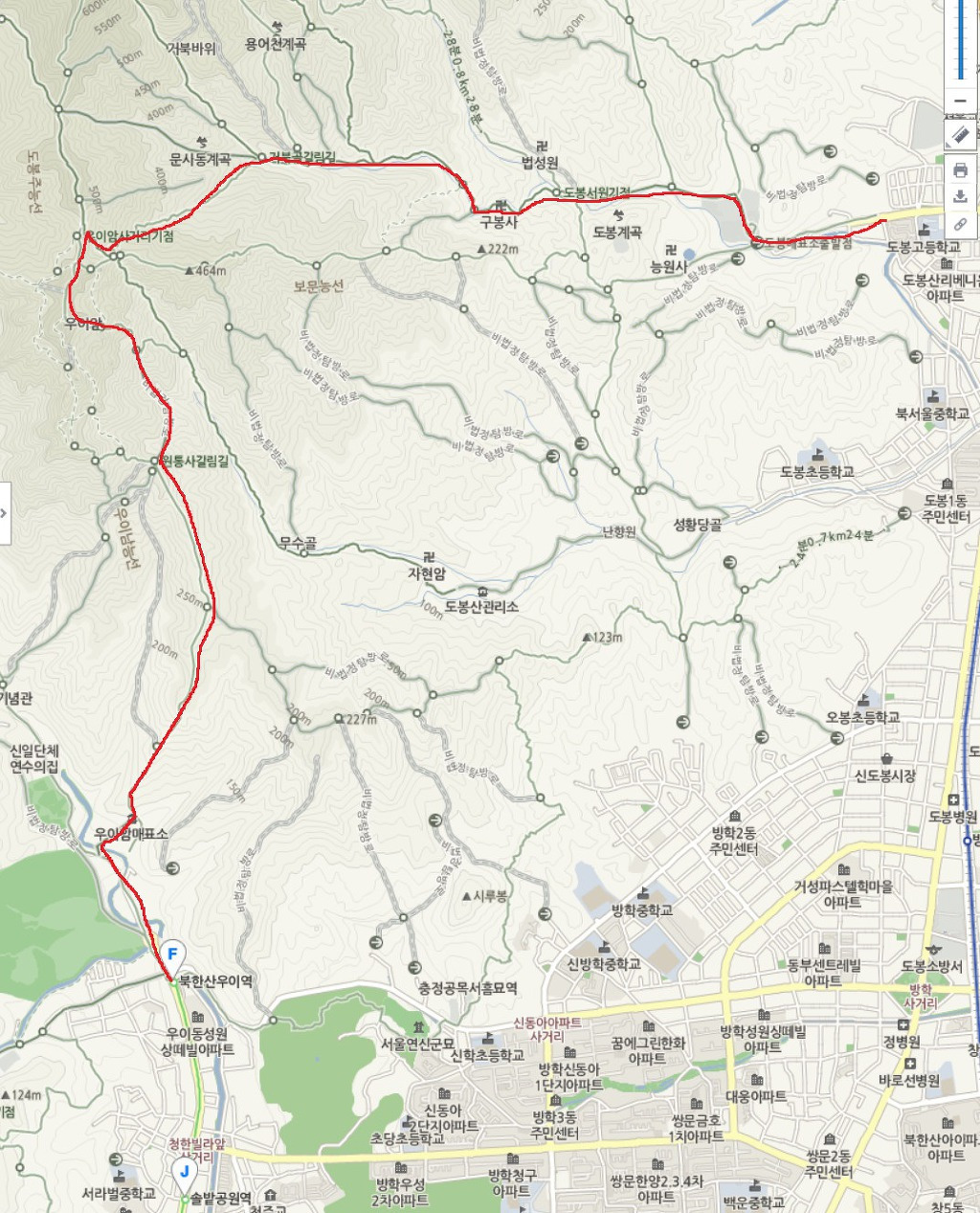 산행코스 : 원통사 경유 도봉산 입구(지도 참조)