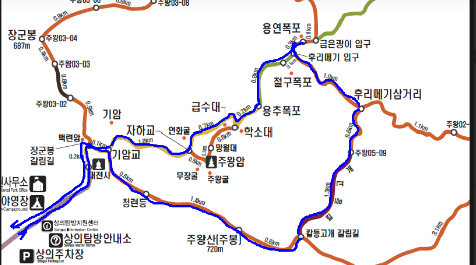 | 산행코스 및 산행일정 | [코스 1] ·상의주차장 ~ 대전사 ~ 주왕산(주봉) ~ 칼등고개 ~ 후리메기 ~ (용연폭포) ~ 용추폭포 ~ 상의주차장 총거리는 10.1km, 소요시간은 4시간 40분, 난이도는 '중'입니다. [코스 2] ·상의주차장 ~ 용추폭포 ~ 용연폭포 ~ 용추폭포 ~ 상의주차장 총거리는 6km, 소요시간은 3시간, 난이도는 '중하'입니다. 시간이 된다면 산행 종료후 주산지 들러서 귀경합니다 https://m.blog.naver.com/michae-bo/224020879230 [Relive로 코스보기] https://www.youtube.com/shorts/3xU4JpIa-LQ?feature=share ※ 코스 및 일정은 변경될 수 있음. |