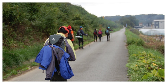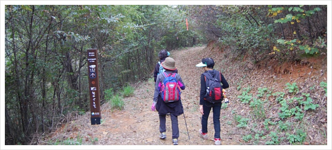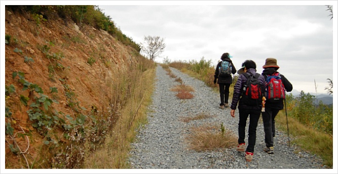 제법 쌀쌀한 가을 아침이 몸과 마음을 깨워줍니다. 마을을 지나 임도로 들어섭니다.