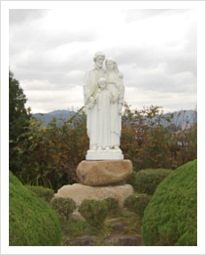 신나무골성지 가기전 성모상 앞에 둘러섰습니다.(12:00)