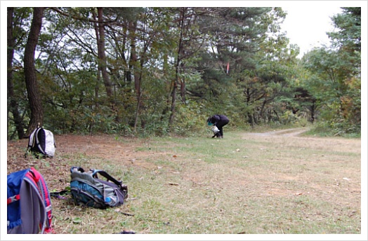 모두들 쉬고 있는데 광명에서 오신 세실리아 자매님은 쉼터 주위에 쓰레기를 줍습니다.