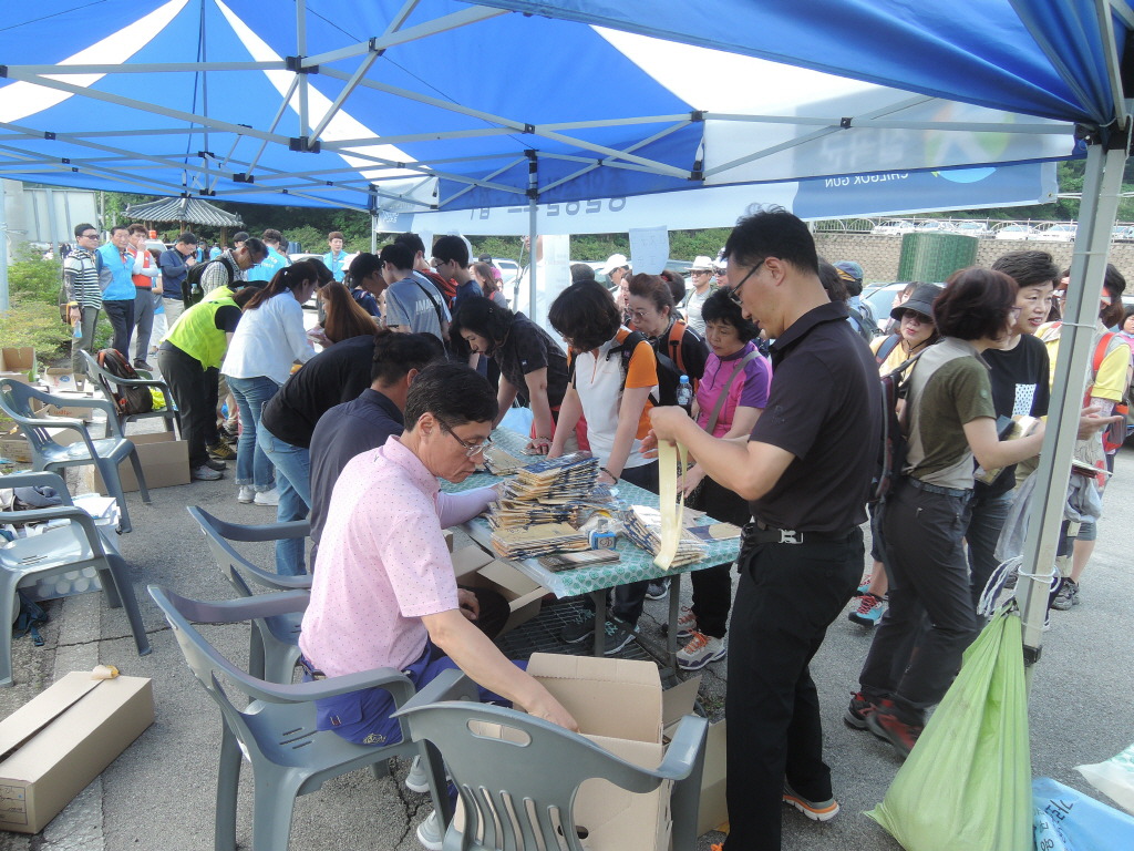 마당재 스템프 함에서는 울트라 코스 분들은 스템프북에 인증도장을 찍고, 종알종알코스 참가자분들은 의외로 신기해하며 당신들의 배부된 달빛잔치 리플릿에 기념 스템프를 찍었습니다. 유치원생들은 자신들의 팔뚝에.....^^