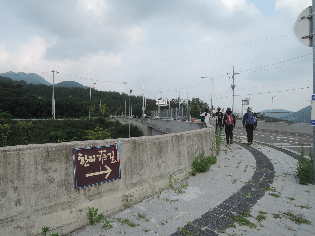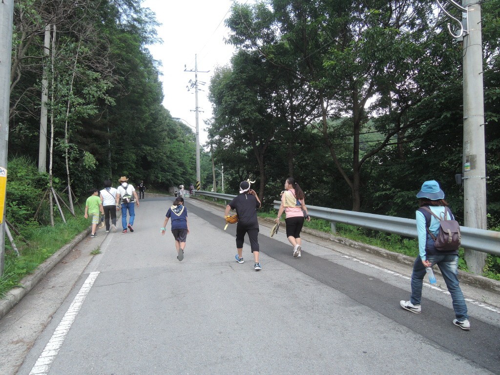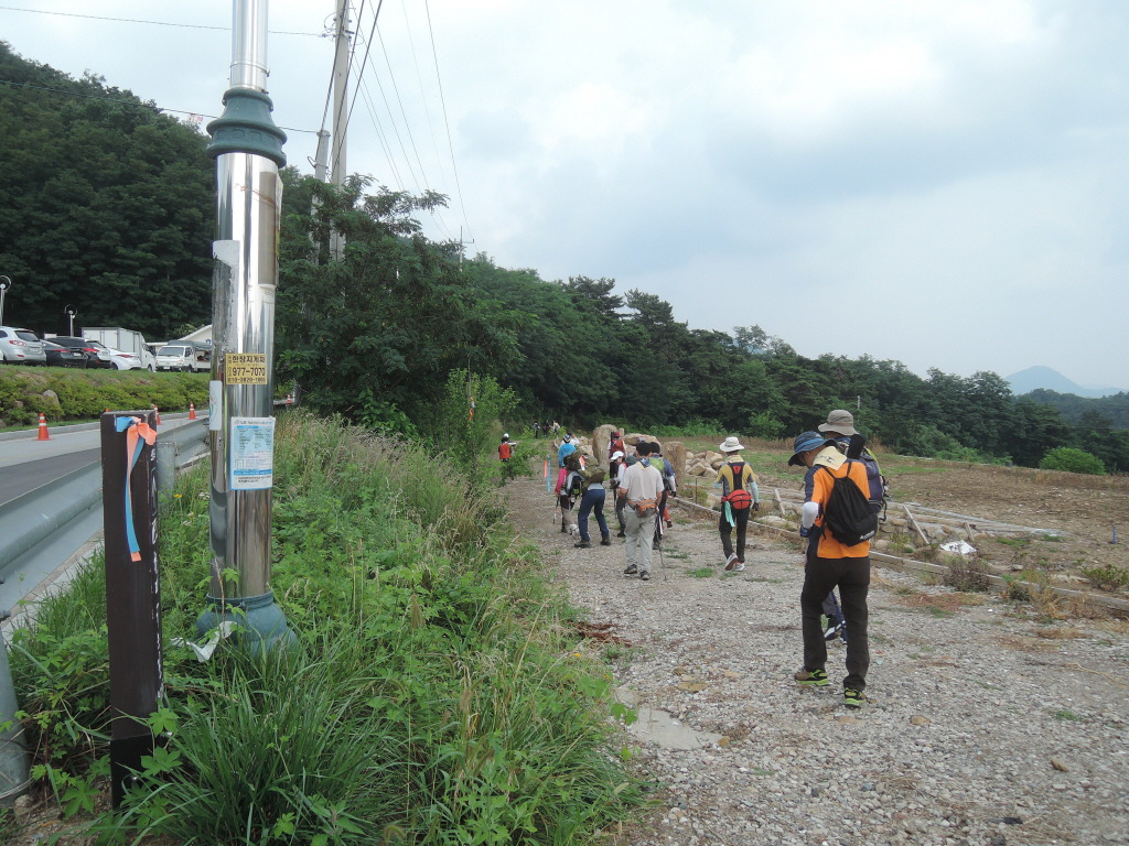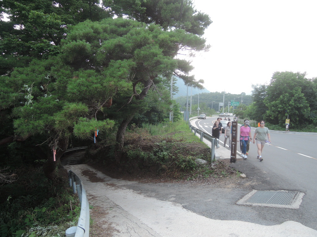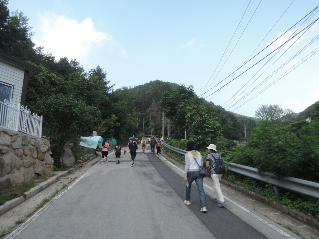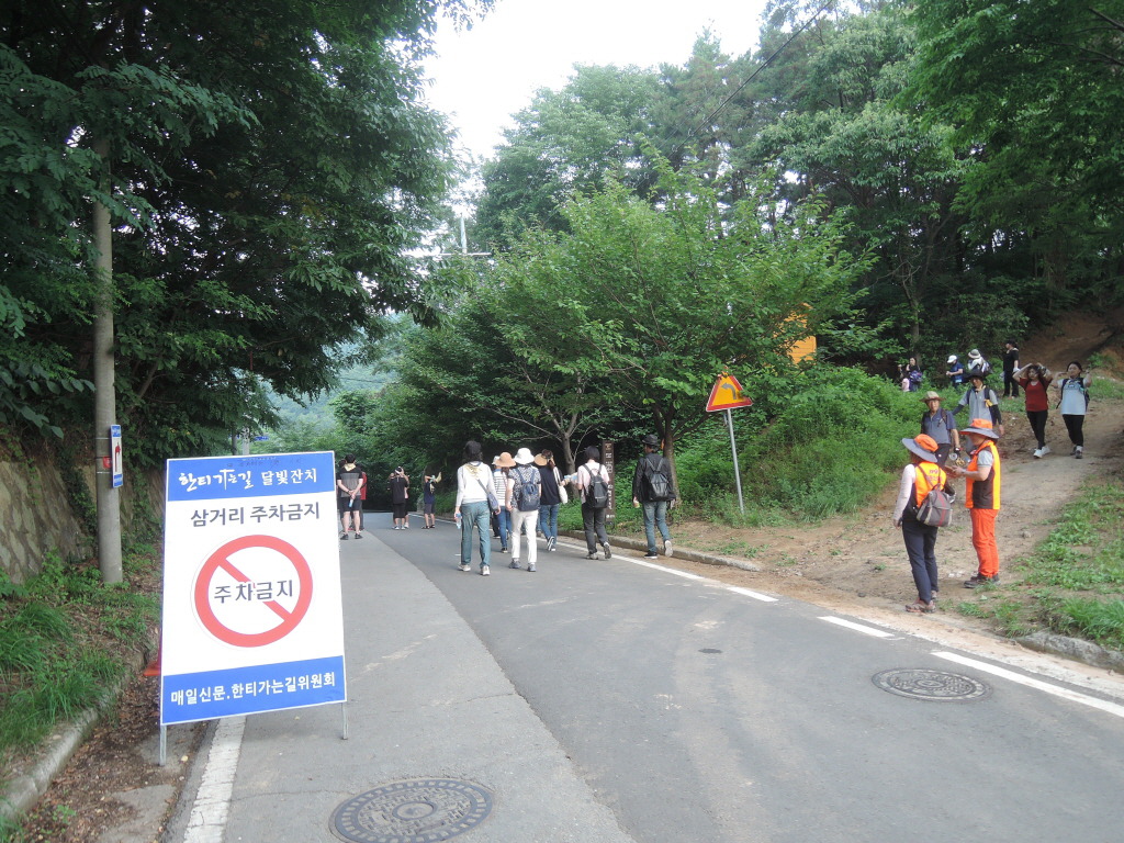 숲길과 마을길의 분기점. 오후 4시를 조금 넘어선 즈음은 여전한 땡볕. 숲길로 대부분들이 내려가셨습니다. 보이는 차량들은 거의 대부분 종알종알코스 참가를 위해 선원사를 찾아가시는 분들이었습니다.
