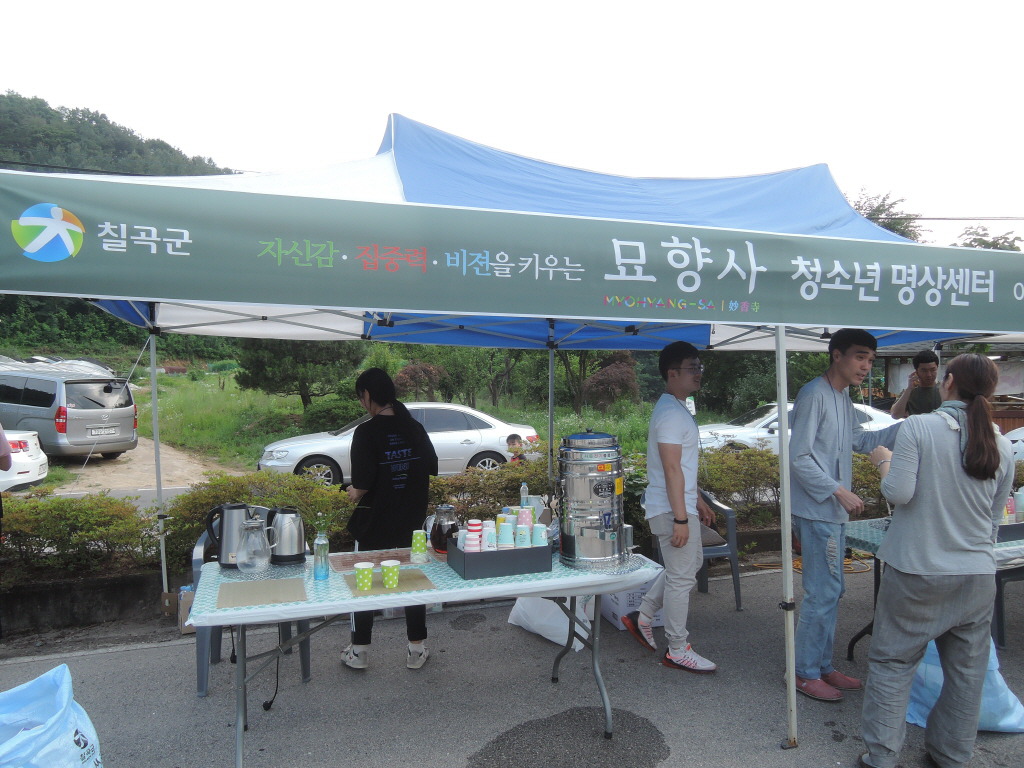 5구간 소나무 숲길 속에 있는 수도도량 묘향사에서 나와서 차봉사를 해주고 계셨습니다.