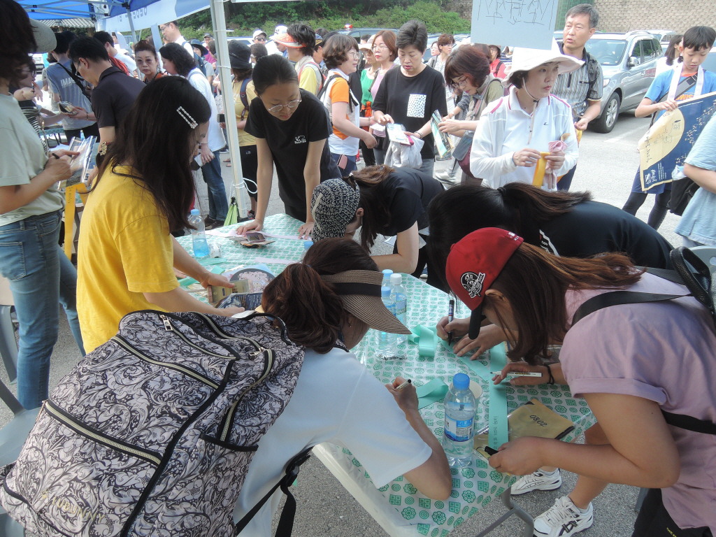 봉사자분들은 접수확인 및 스카프, 소원리본 배부에 여념이 없었습니다.