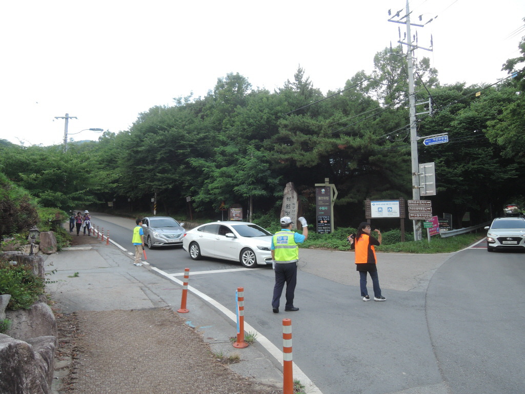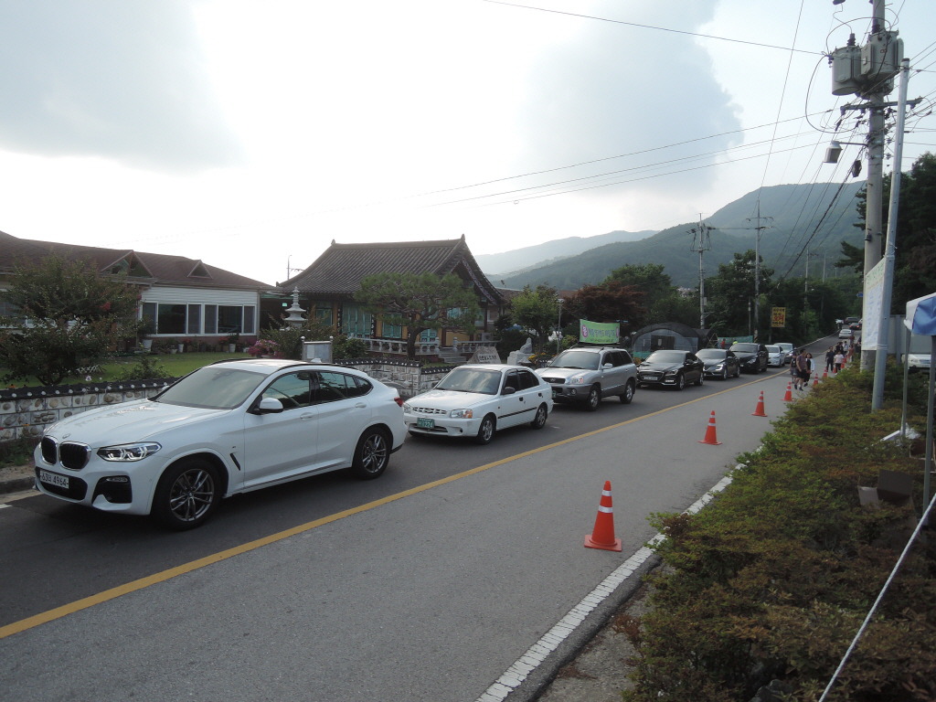 선원사 앞은 주차장 진입을 위해 잠시 일렬로 대기. 주차 안내에 따라 입차.
