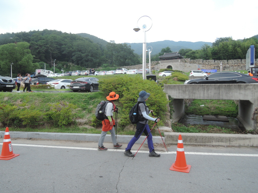 진남문 주차장 안쪽이 이제 다 차서 바로 아래 도로변으로 주차 시작. 휘파람 코스로 신청하신 부부. 접수처로 향합니다.