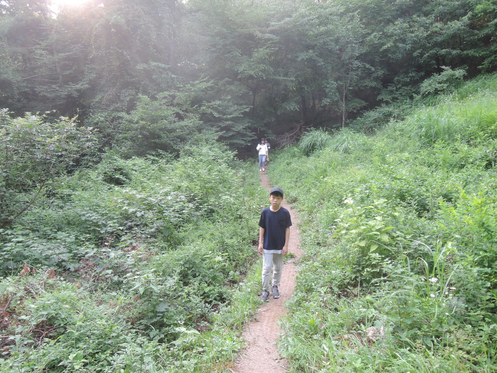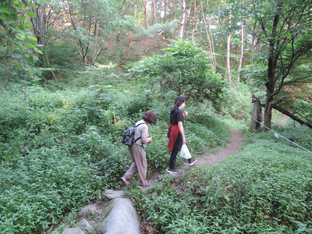 어느 부부의 숲길. 남편께서는 땀을 훔치고 부인께서는 부채를 들고... 지금의 발걸음이 여름을 이겨내는 발걸음임을.....