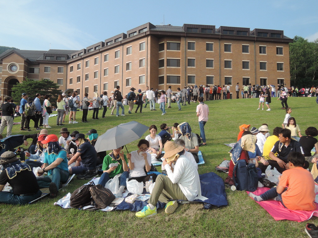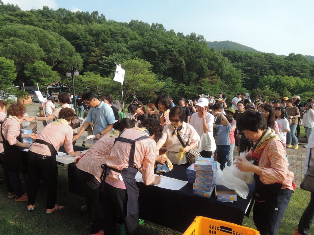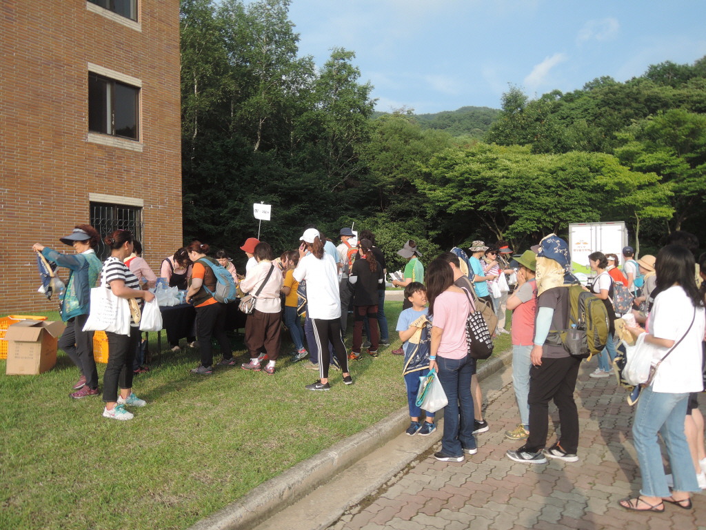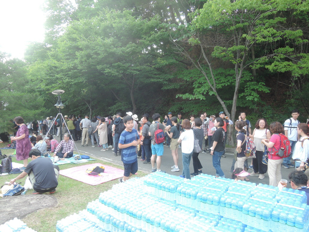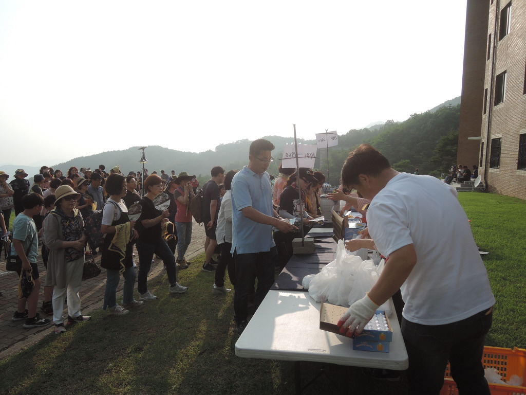 잔디광장 위쪽 동편도 큰 줄. 누구나 코스 참가자들을 위한 저녁 배식.