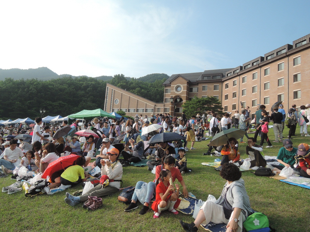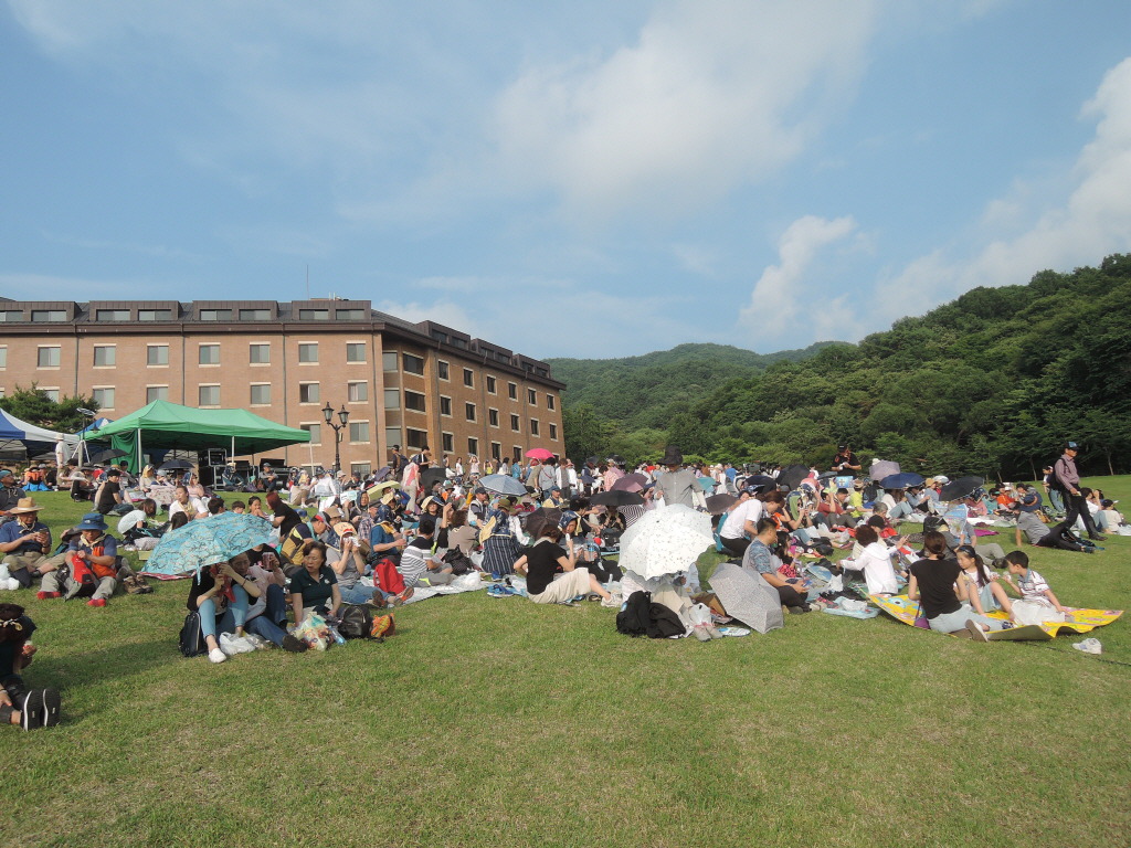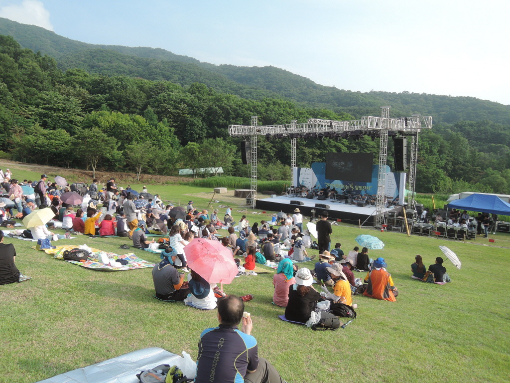 6시 30분경. 어느 듯 주무대 가장 앞 및 중간을 위주로 먼저 자리에 앉기. 그러나 한티 잔디광장은 어느 곳에서나 편히 공연을 관람할 수 있는 곳.